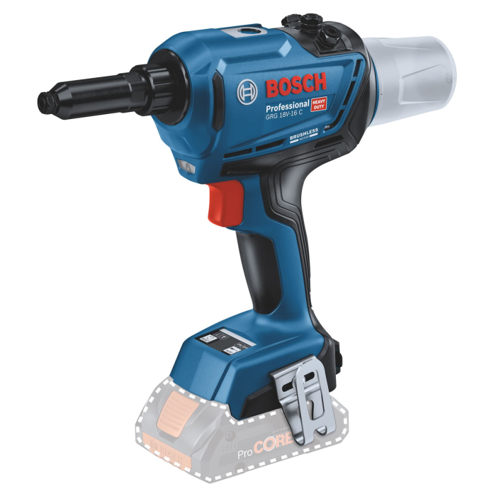 Võimaldab paigaldada 3.0 – 6.4mm pimeneete.Kasutaja saab valida 2 töörežiimi vahel: automaatne või manuaalne.Sisseehitatud Bluetooth ühendus, mille abil saab kasutaja masinat seadistada läbi telefoni äpi “Bosch Toolbox”.Harjavaba mootor.Aku pinge: 18 V Max. tõmbejõud: 16000 NKäigu pikkus: 0 – 25mmNeedi läbimõõt: 3 – 6.4 mmTöörežiim: Üksik/automaatne Kaal ilma akuta: 1.6 kgKomplekti kuulub: Pappkarp4 needi tsangi (3.0/3.2 mm, 4.0 mm, 4.8/5.0 mm, 6.4 mm)Võti tsangi vahetuseksRiputusaasNeedikonteinerTootjakood: 06019K5000Pikenda tasuta oma elektri- või akutööriista garantii 3-aastale registreerides see siin