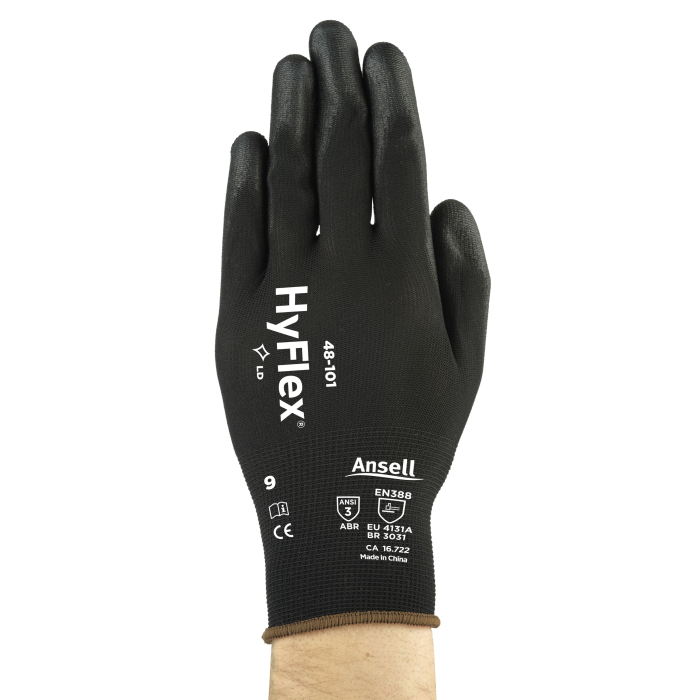 The Hyflex 48-101 töökindad — Õhukesed ja mugavalt istuvad kindad polüestrist, tagavad hea painduvuse ja näputundlikkuse. Elastne randmeosa hoiab kinda kindlalt käes. Sobivad kuivadesse tingimustesse kergeteks töödeks, näiteks sorteerimine, pakkimine või montaaž.