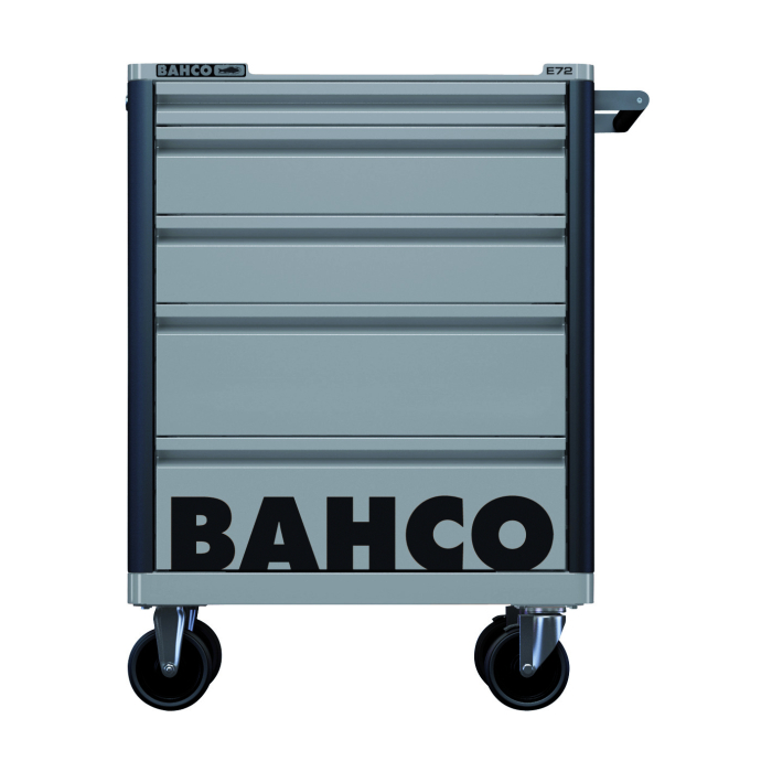 Bahco E72 tööriistakäru on valmistatud vastupidavast topeltseinaga teraskonstruktsioonist. Varustatud 5-täielikult avaneva sahtliga kuullaagritel, igaühe kandevõime kuni 30 kg. Kummirattad tagavad sujuva liikumise ka ebatasasel pinnal. Viimistletud kriimustuskindla hall pulbervärvkattega, lisaks põrutuskindlad nurgakaitsmed ja perforeeritud küljepaneelid tarvikute kinnitamiseks. Turvalise silinderlukuga.