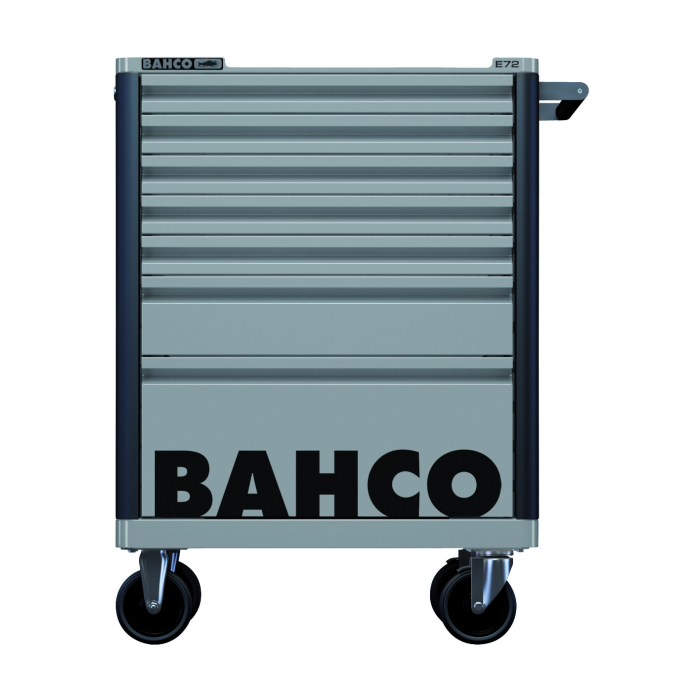 Bahco E72 tööriistakäru on valmistatud vastupidavast topeltseinaga teraskonstruktsioonist. Varustatud 7-täielikult avaneva sahtliga kuullaagritel, igaühe kandevõime kuni 30 kg. Kummirattad tagavad sujuva liikumise ka ebatasasel pinnal. Viimistletud kriimustuskindla hall pulbervärvkattega, lisaks põrutuskindlad nurgakaitsmed ja perforeeritud küljepaneelid tarvikute kinnitamiseks. Turvalise silinderlukuga.