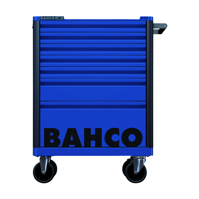 Bahco E72 tööriistakäru on valmistatud vastupidavast topeltseinaga teraskonstruktsioonist. Varustatud 7-täielikult avaneva sahtliga kuullaagritel, igaühe kandevõime kuni 30 kg. Kummirattad tagavad sujuva liikumise ka ebatasasel pinnal. Viimistletud kriimustuskindla sinine pulbervärvkattega, lisaks põrutuskindlad nurgakaitsmed ja perforeeritud küljepaneelid tarvikute kinnitamiseks. Turvalise silinderlukuga.
