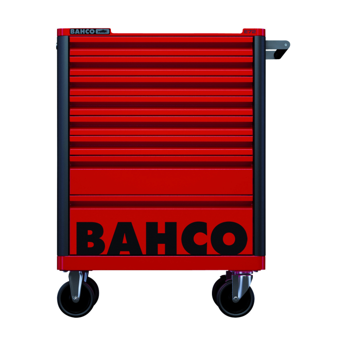 Bahco E72 tööriistakäru on valmistatud vastupidavast topeltseinaga teraskonstruktsioonist. Varustatud 8-täielikult avaneva sahtliga kuullaagritel, igaühe kandevõime kuni 30 kg. Kummirattad tagavad sujuva liikumise ka ebatasasel pinnal. Viimistletud kriimustuskindla punane pulbervärvkattega, lisaks põrutuskindlad nurgakaitsmed ja perforeeritud küljepaneelid tarvikute kinnitamiseks. Turvalise silinderlukuga.
