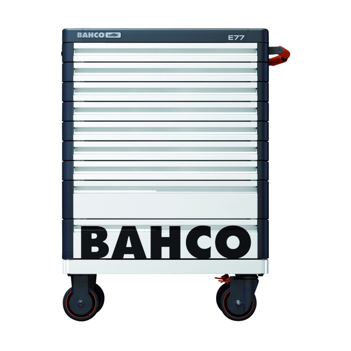 Bahco E77 Premium tööriistakäru on valmistatud intensiivseks kasutuseks mõeldud topeltseinaga teraskonstruktsioonist, tagades maksimaalse vastupidavuse. Käru 9 sahtlit on täielikult avatavad ning varustatud põrutuskindlate nurgakaitsetega ja pöördkinnitussüsteemiga, mis hoiab ära sahtlite tahtmatu avanemise. Ainulaadne DAAT-turvasüsteem lubab korraga avada vaid ühe sahtli, vältides ümberkukkumise ohtu. Suured 125 mm rattad koos kahepoolse pidurisüsteemiga tagavad stabiilsuse igal pinnal. Perforeeritud küljepaneelid ja spetsiaalselt kujundatud ülaosa pakuvad suurepäraseid kohandamisvõimalusi Xpand modulaarse lisatarvikesüsteemi abil. Pulbervärvitud viimistlus seest ja väljast kaitseb kriimustuste ja rooste eest. Soovi korral saadaval elektrooniline lukustussüsteem.