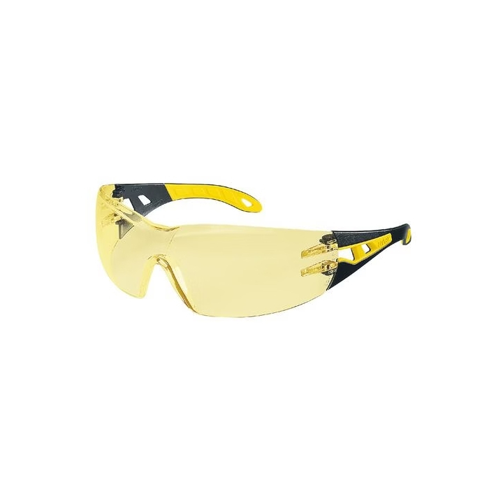 uvex Pheos kaitseprillid kollaka (amber) läätsedega pakuvad tõhusat silmakaitset ja paremat nähtavust tööstus- ning töökoja keskkondades. Täielikult metallivaba ja raamita disainiga prillidel on kontrasti tõstvad duo-sfäärilised polükarbonaadist läätsed, millel on vastupidav supravision excellence kate – see tagab selge vaate ja mugavuse ka täpsust nõudvate tööde juures. Kollane toon parandab kontrasti vähese või kunstliku valguse korral, lai ja takistusteta vaateväli ning täiendav kulmukaitse suurendavad ohutust, tegemata järeleandmisi kandmismugavuses. Prillid sobivad kokku muu isikukaitsevarustusega ning on saadaval standardses ja kitsamas (Pheos S) suuruses, et leida parim sobivus.