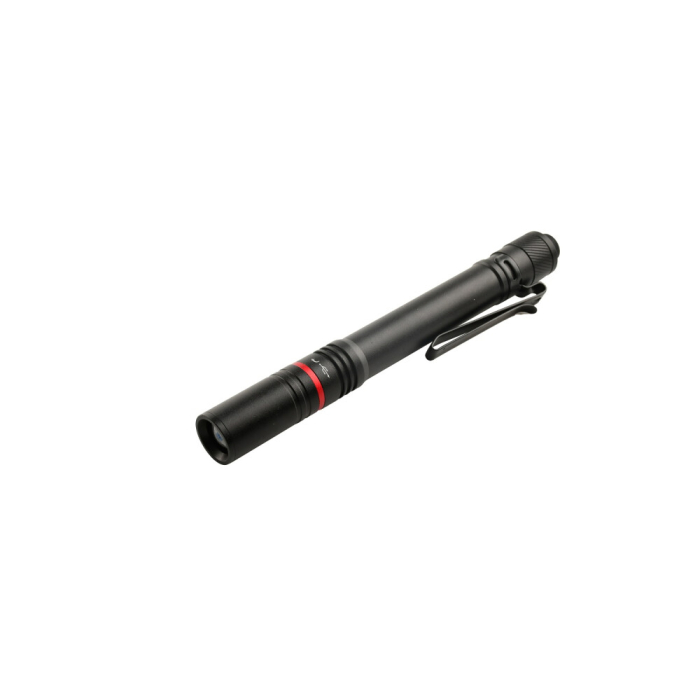 Kirjeldus / Tamoline laetav taskupen – 300 luumenit, reguleeritav zoom, USB-C laadimine, alumiiniumkorpus, IP67, taskuklambriga