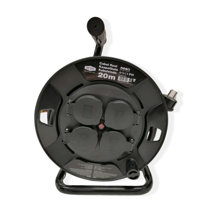 Tamoline pikendusjuhe trumlil – 20 m H05RR-F 3G1.5 kummikaabel, 4 maandusega pesa, IP44, ülekoormuskaitse