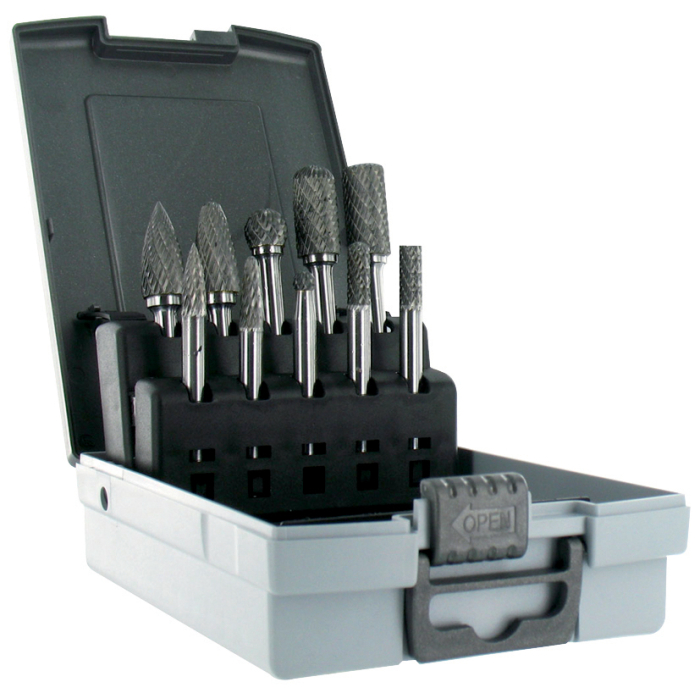 Kirjeldus / Tivoly karbiidist rotatsioonifreeside komplekt – 10-osaline, Ø6–12mm, peen lõige, 6mm vars, TECHNIC seeria