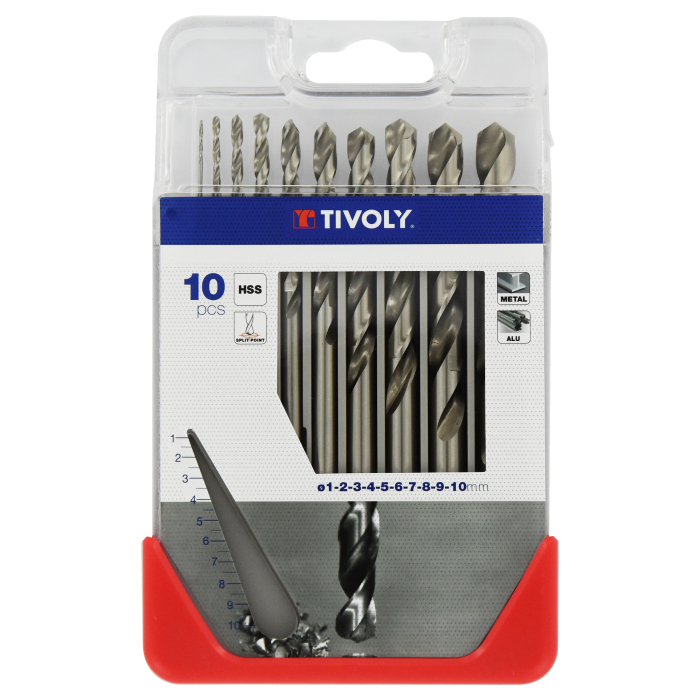 Tivoly metallipuuride komplekt – 10-osaline Ø 1–10 mm, "split point", 30° N-spiraaliga, HSS, silindriline vars
